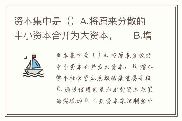 资本集中是()A.将原来分散的中小资本合并为大资本, B.增加整个社会资本总额的最重要手段 C.通过信用制度和进行资本积累而实现的 D.个别资本家把剩余价值转化成为资本
