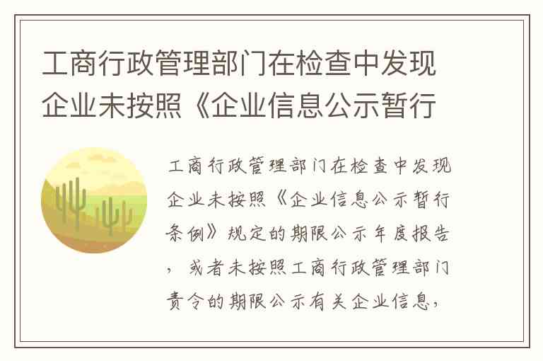 工商行政管理部门在检查中发现企业未按规定公示年度报告、未在责令期限内公示信息或公示信息虚假时,应依照**《企业经营异常名录管理暂行办法》** 的规定处理。这一结论的法律依据体现在多个层面: