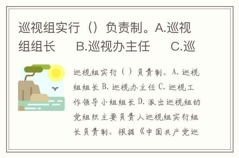巡视组实行()负责制。A.巡视组组长 B.巡视办主任 C.巡视工作领导小组组长 D.派出巡视组的党组织主要负责人