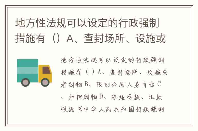 地方性法规可以设定的行政强制措施有()A、查封场所、设施或者财物 B、限制公民人身自由 C、扣押财物 D、冻结存款、汇款