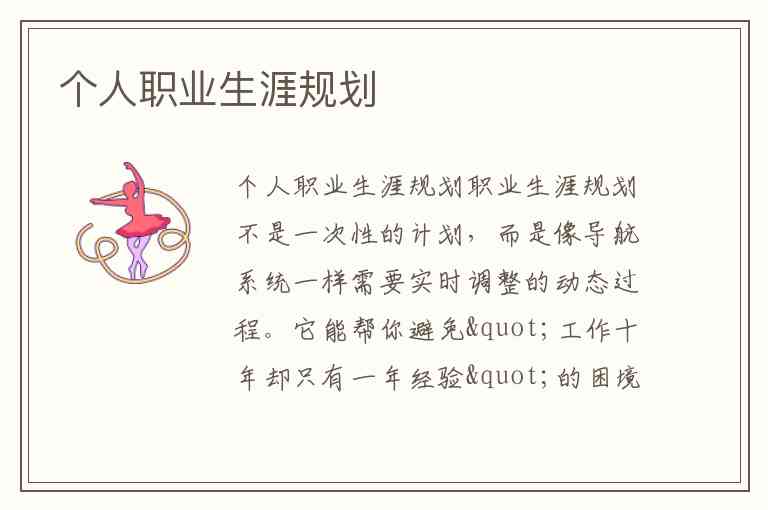 职业生涯规划不是一次性的计划,而是像导航系统一样需要实时调整的动态过程。它能帮你避免"工作十年却只有一年经验"的困境,让每一步选择都为长期目标积累能量。无论是刚入职场的新人,还是考虑转型的老兵,科学的规划方法都能让你少走弯路。