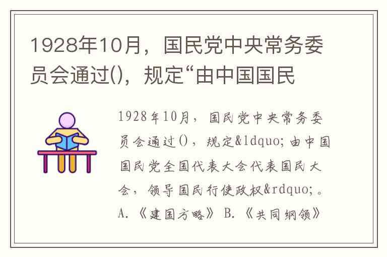 1928年10月,国民党中央常务委员会通过(),规定“由中国国民党全国代表大会代表国民大会,领导国民行使政权”。A.《建国方略》 B.《共同纲领》 C.《训政纲领》 D.《中华民国宪法》