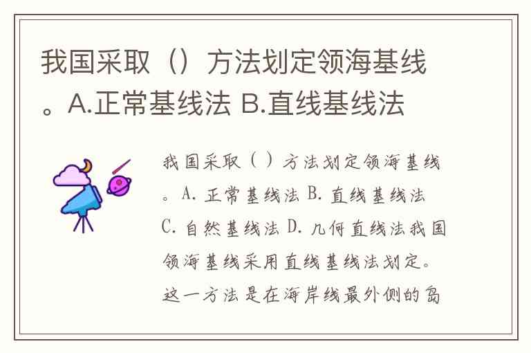 我国采取()方法划定领海基线。A.正常基线法 B.直线基线法 C.自然基线法 D.几何直线法