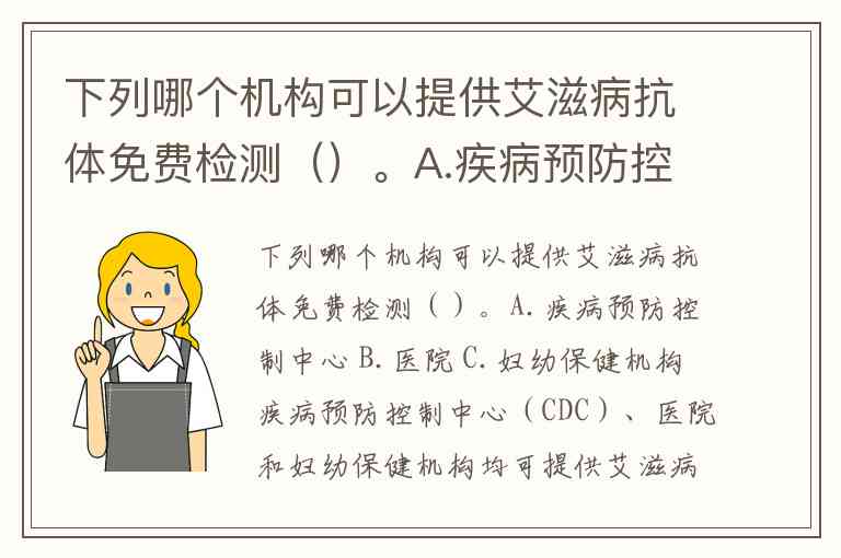 下列哪个机构可以提供艾滋病抗体免费检测()。A.疾病预防控制中心 B.医院 C.妇幼保健机构