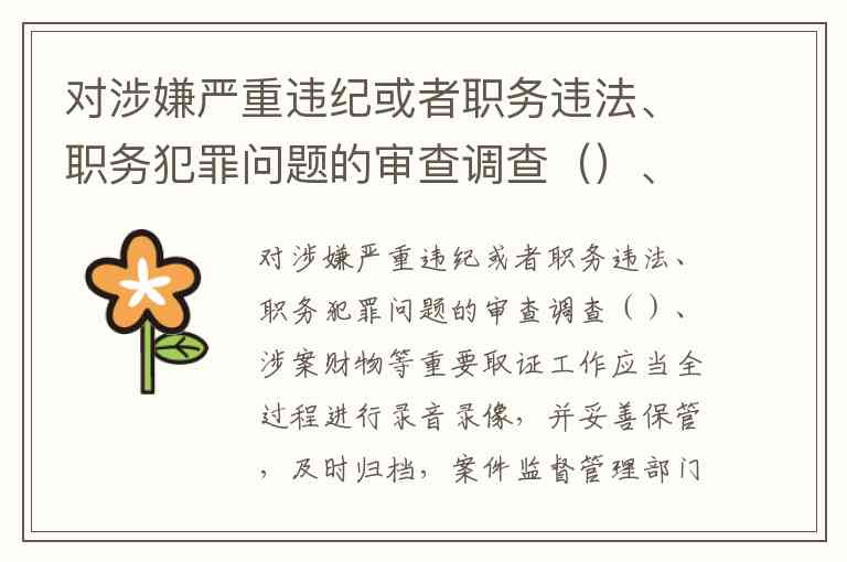 《中国共产党纪律检查机关监督执纪工作规则》明确规定,对涉嫌严重违纪或者职务违法、职务犯罪问题的审查调查谈话、搜查、查封、扣押(暂扣、封存)涉案财物等重要取证工作应当全过程进行录音录像。这一制度设计既是对审查调查人员的监督约束,也是对被审查调查人权益的保护,旨在通过技术手段确保取证过程的合法性和规范性。
