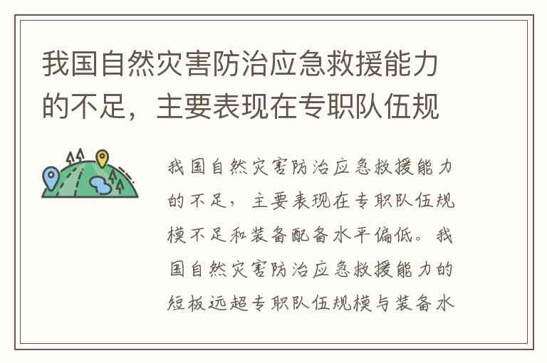 我国自然灾害防治应急救援能力的不足,主要表现在专职队伍规模不足和装备配备水平偏低。