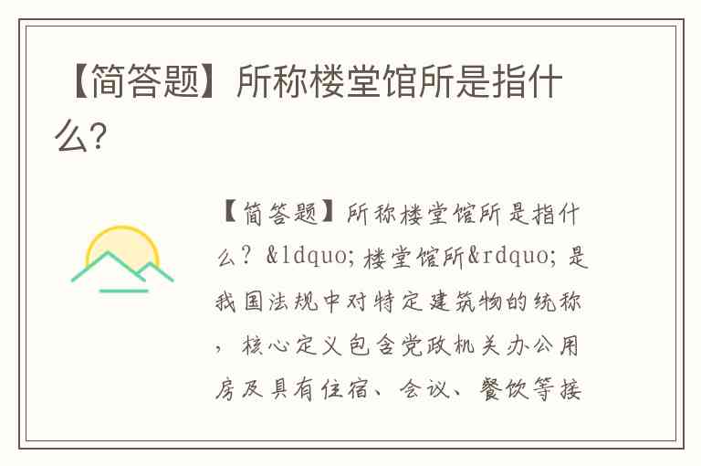“楼堂馆所”是我国法规中对特定建筑物的统称,核心定义包含党政机关办公用房及具有住宿、会议、餐饮等接待功能的设施或场所,具体范围随法规修订有所调整。