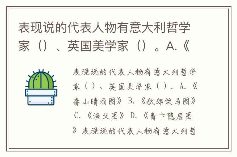 表现说的代表人物有意大利哲学家()、英国美学家()。A.《春山晴雨图》 B.《秋郊饮马图》 C.《渔父图》 D.《青卞隐居图》