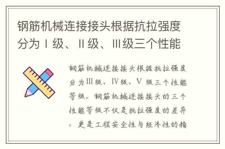 钢筋机械连接接头根据抗拉强度分为Ⅰ级、Ⅱ级、Ⅲ级三个性能等级。