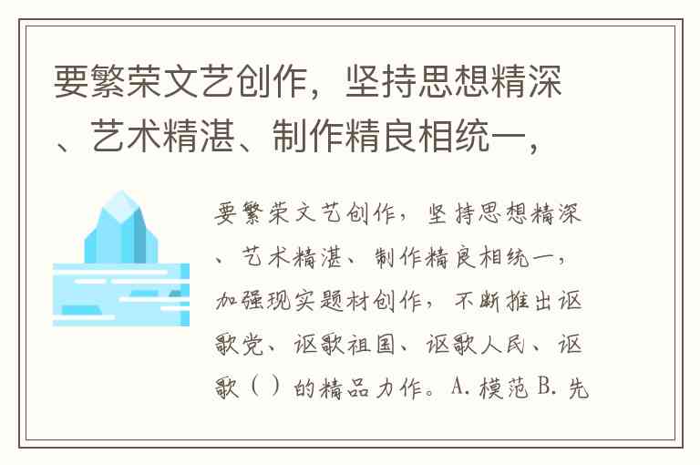 这一导向与“思想精深、艺术精湛、制作精良”的创作标准相辅相成,要求文艺作品在主题升华与艺术表达上实现统一,最终服务于“同心共筑中国梦”的时代目标。
