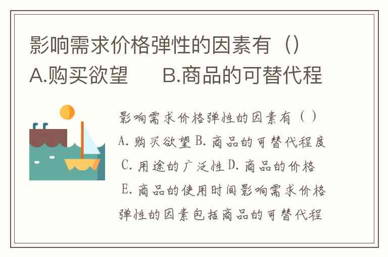 影响需求价格弹性的因素包括商品的可替代程度、用途广泛性、使用时间长短和购买欲望,正确答案为ABCE。商品的价格本身不直接影响弹性,而是通过价格变动与需求量变动的相对关系体现弹性大小。