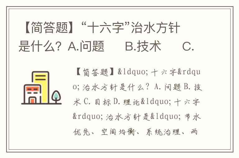 【简答题】“十六字”治水方针是什么?A.问题 B.技术 C.目标 D.理论