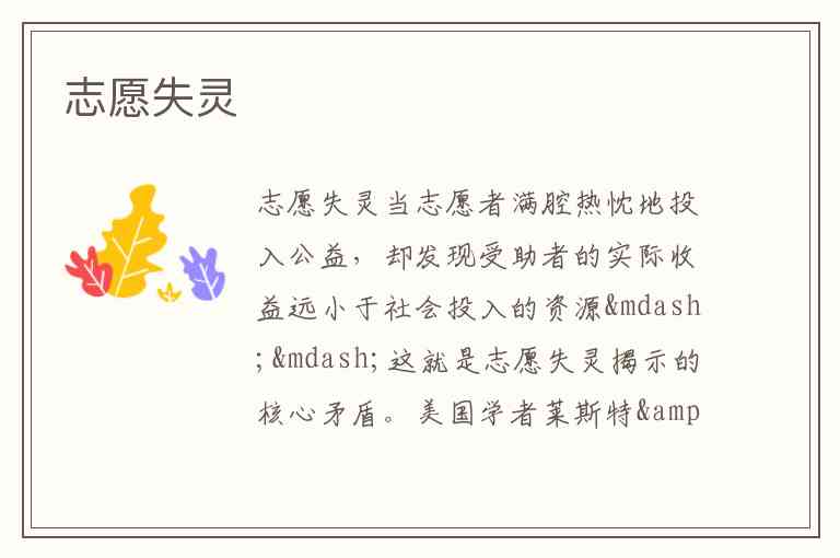 当志愿者满腔热忱地投入公益,却发现受助者的实际收益远小于社会投入的资源——这就是志愿失灵揭示的核心矛盾。美国学者莱斯特·M·萨拉蒙在20世纪80年代提出这一理论,打破了非营利组织"完美利他"的神话,指出第三部门同样存在固有局限,需要政府与市场协同矫正。这种失灵并非简单的执行失误,而是深植于组织基因与制度环境的系统性困境,在全球非营利领域普遍存在。