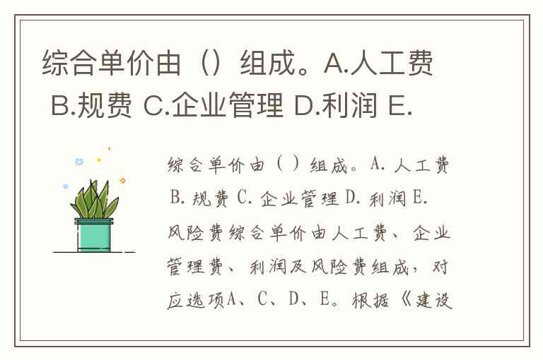 综合单价由()组成。A.人工费 B.规费 C.企业管理 D.利润 E.风险费