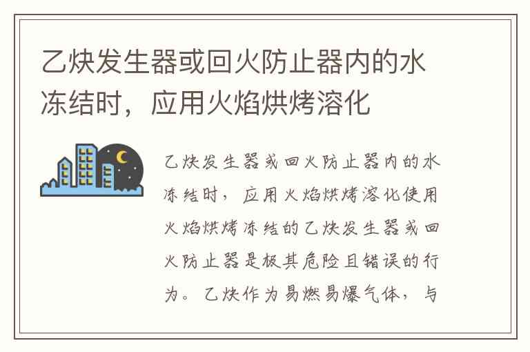 乙炔发生器或回火防止器内的水冻结时,应用火焰烘烤溶化