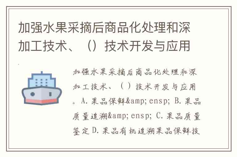 加强水果采摘后商品化处理和深加工技术、()技术开发与应用。A.果品保鲜 B.果品质量追溯 C.果品质量鉴定 D.果品有机追溯