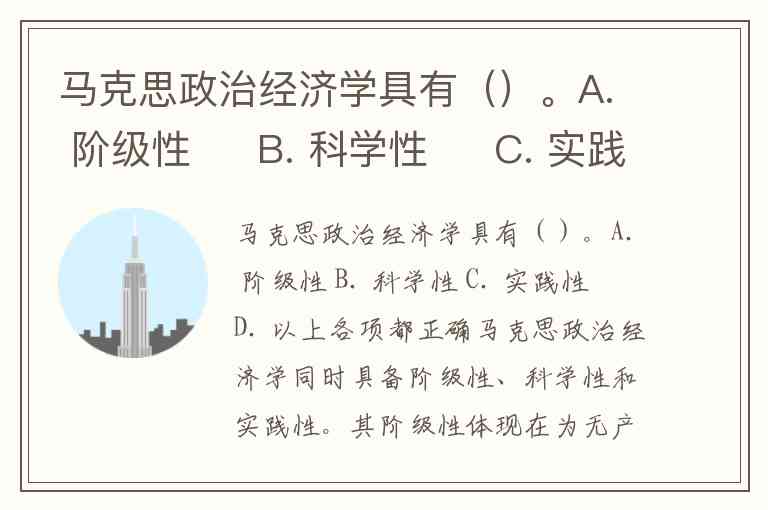 马克思政治经济学具有()。A. 阶级性 B. 科学性 C. 实践性 D. 以上各项都正确