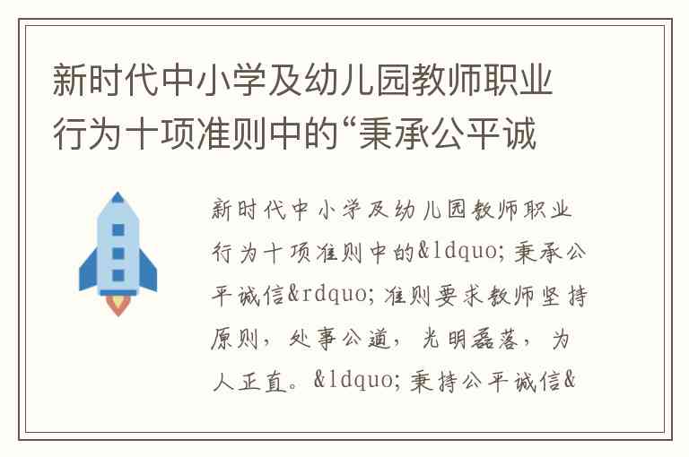 新时代中小学及幼儿园教师职业行为十项准则中的“秉承公平诚信”准则要求教师坚持原则,处事公道,光明磊落,为人正直。