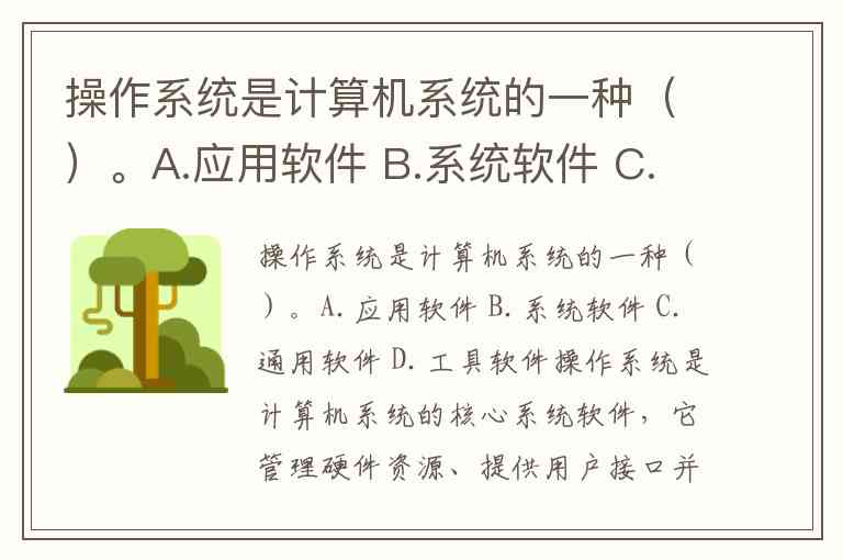 操作系统是计算机系统的一种()。A.应用软件 B.系统软件 C.通用软件 D.工具软件