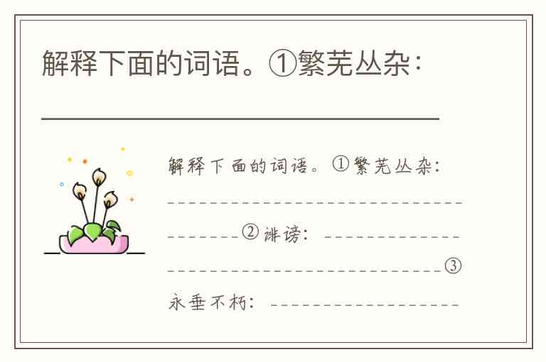 解释下面的词语。①繁芜丛杂:___________________________________②诽谤:_______________________________________③永垂不朽:___________________________________