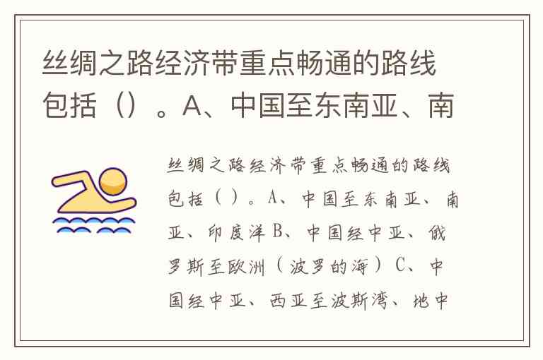 丝绸之路经济带重点畅通的路线包括()。A、中国至东南亚、南亚、印度洋 B、中国经中亚、俄罗斯至欧洲(波罗的海) C、中国经中亚、西亚至波斯湾、地中海 D、中国经新加坡—太平洋
