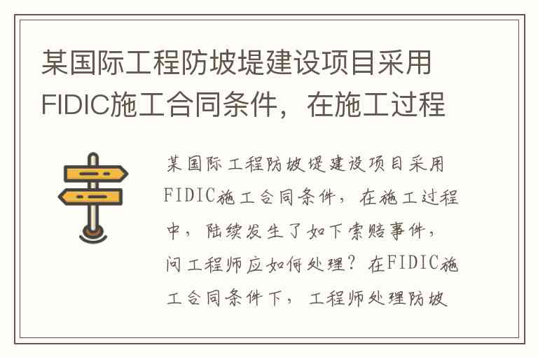 某国际工程防坡堤建设项目采用FIDIC施工合同条件,在施工过程中,陆续发生了如下索赔事件,问工程师应如何处理?