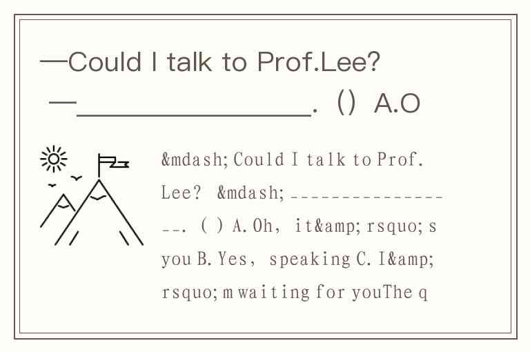 —Could I talk to Prof.Lee? —_________________.()A.Oh,it’s you B.Yes,speaking C.I’m waiting for you