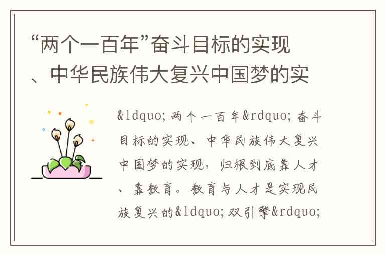 “两个一百年”奋斗目标的实现、中华民族伟大复兴中国梦的实现,归根到底靠人才、靠教育。