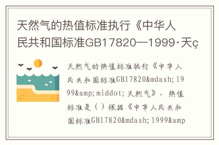 根据《中华人民共和国标准GB17820—1999·天然气》,天然气的热值标准为高位发热值>31.4 MJ/m³(在101.325kPa、20℃条件下测量),折合成标准立方米(Nm³)为33.7 MJ/Nm³。这一指标适用于通过管道输送的商品天然气,旨在确保燃烧效率和用户设备兼容性。
