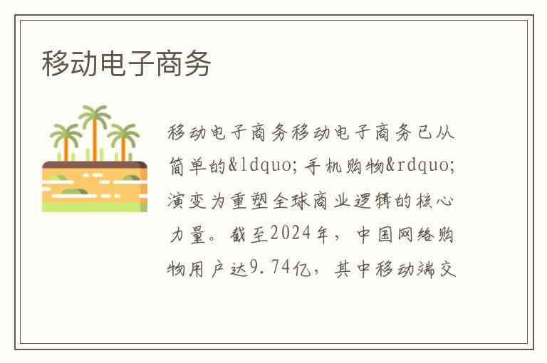 移动电子商务已从简单的“手机购物”演变为重塑全球商业逻辑的核心力量。截至2024年,中国网络购物用户达9.74亿,其中移动端交易占比超74%,智能手机与4G/5G技术的普及让“永远在线”成为消费常态。这种变革不仅体现在交易规模上——2024年实物商品网上零售额拉动社会消费品零售总额增长1.7个百分点,更深刻改变了商业形态:直播带货从流量狂欢升级为“内容种草+场景体验”的基础设施,跨境电商通过海外仓与本地化运营将中国供应链能力输出全球。