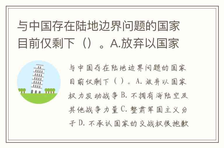 与中国存在陆地边界问题的国家目前仅剩下()。A.放弃以国家权力发动战争 B.不拥有海陆空及其他战争力量 C.整肃军国主义分子 D.不承认国家的交战权