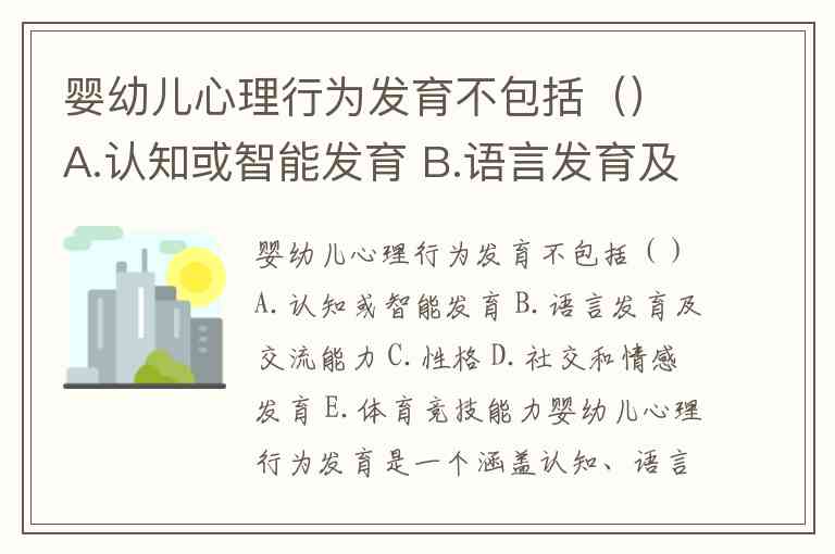 婴幼儿心理行为发育不包括()A.认知或智能发育 B.语言发育及交流能力 C.性格 D.社交和情感发育 E.体育竞技能力
