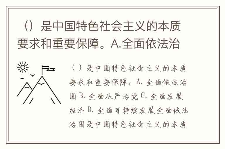 ()是中国特色社会主义的本质要求和重要保障。A.全面依法治国 B.全面从严治党 C.全面发展经济 D.全面可持续发展