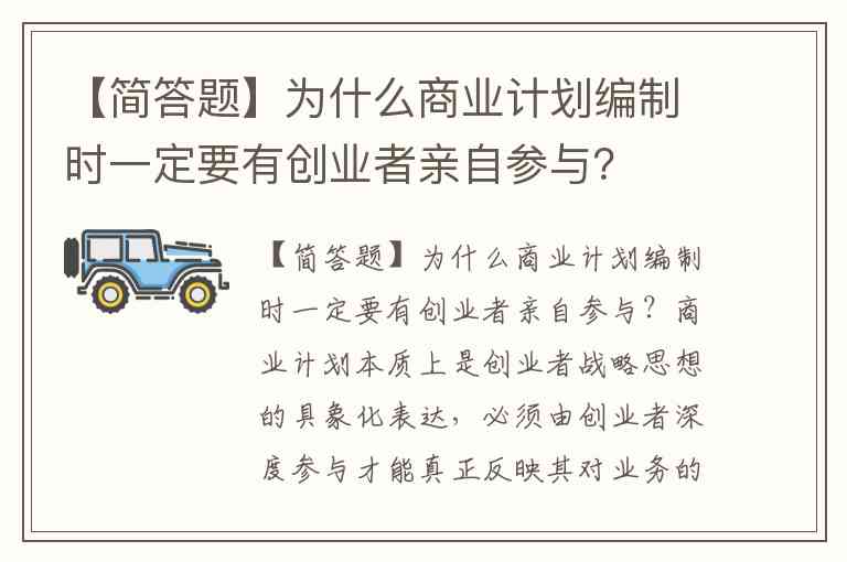 【简答题】为什么商业计划编制时一定要有创业者亲自参与?