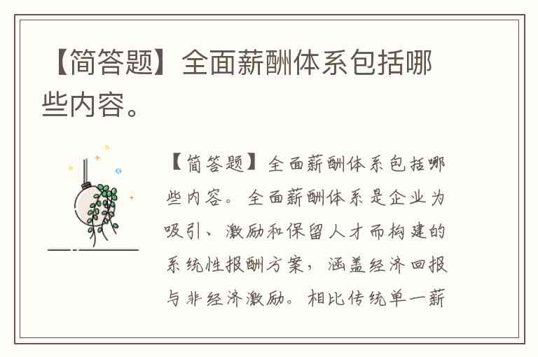 【简答题】全面薪酬体系包括哪些内容。