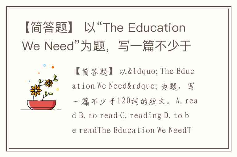 【简答题】 以“The Education We Need”为题,写一篇不少于120词的短文。A.read B.to read C.reading D.to be read