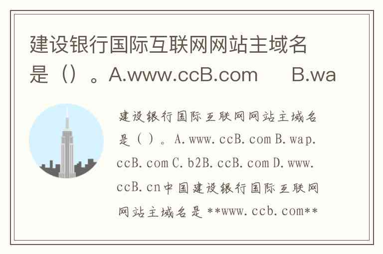 建设银行国际互联网网站主域名是()。A.www.ccB.com B.wap.ccB.com C.b2B.ccB.com D.www.ccB.cn