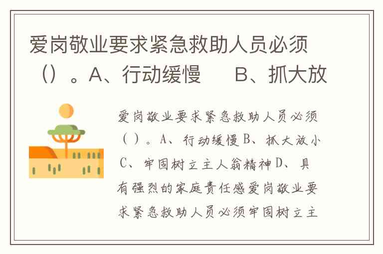 爱岗敬业要求紧急救助人员必须()。A、行动缓慢 B、抓大放小 C、牢固树立主人翁精神 D、具有强烈的家庭责任感