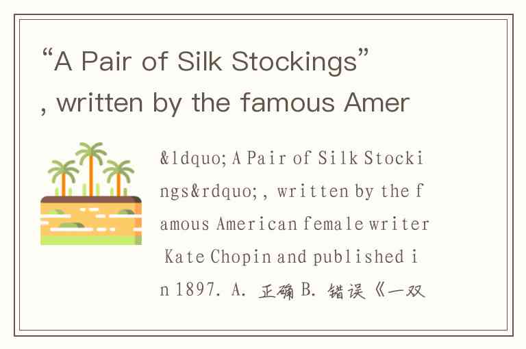“A Pair of Silk Stockings”, written by the famous American female writer Kate Chopin and published in 1897. A. 正确 B. 错误