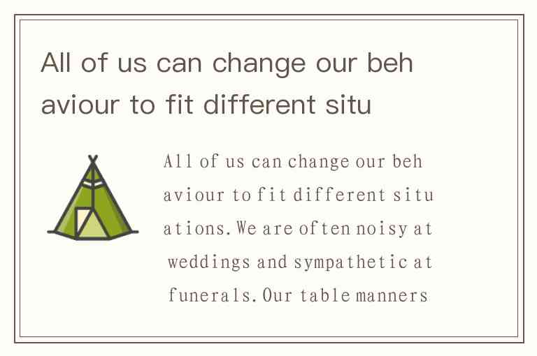 The first paragraph discusses how people adjust behavior in different situations (e.g., weddings vs. funerals, picnics vs. restaurants). This sets up the broader topic that follows: language, as a form of behavior, also requires situational adjustment. It does not summarize the entire passage (A), nor does it focus solely on illustrating its first or last sentence (C/D), but rather introduces the core theme.