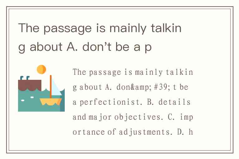 It seems the passage you're referring to hasn't been included in your question. To accurately determine the main idea (whether it’s about avoiding perfectionism, balancing details and objectives, the importance of adjustments, or combining hard work with luck), please share the full text of the passage. I’ll then analyze its core message and help you identify the correct option.