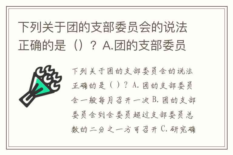 下列关于团的支部委员会的说法正确的是()?A.团的支部委员会一般每月召开一次 B.团的支部委员会到会委员超过支部委员总数的二分之一方可召开 C.研究确定提交支部大会审议的议题 D.研究确定入团积极分子和党的发展对象