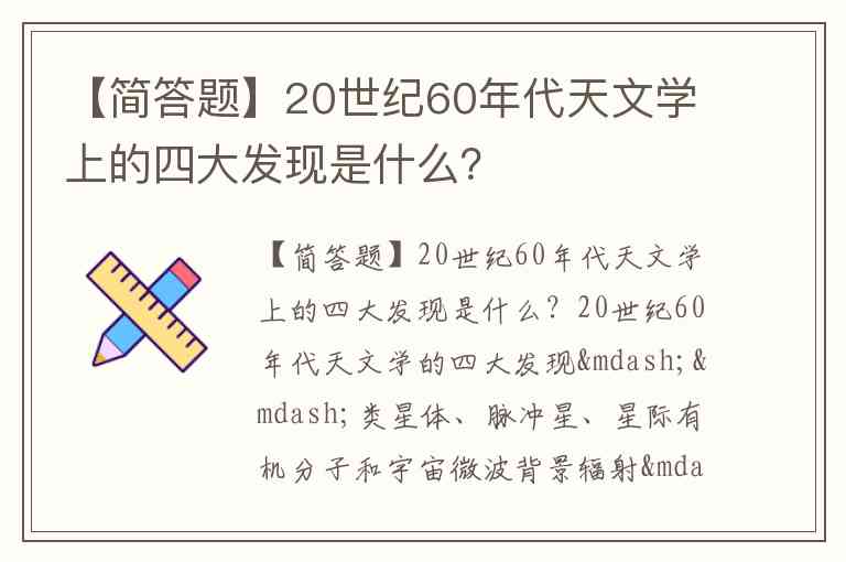 【简答题】20世纪60年代天文学上的四大发现是什么?