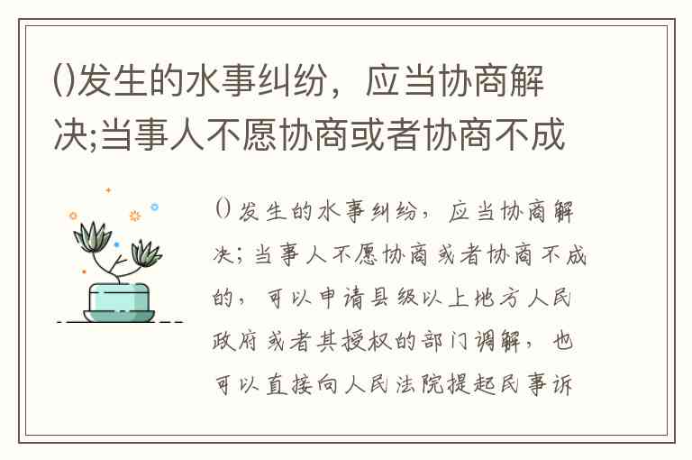 综上,本题正确答案为 A、B、C。这一制度设计既体现了对民事主体意思自治的尊重(协商优先),也提供了行政调解与司法救济的双重保障,构建了多层次的纠纷化解体系。在水资源日益紧张的当下,理解并运用这一法律规定,对维护用水秩序和社会稳定具有重要现实意义。