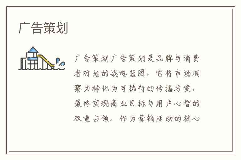 广告策划是品牌与消费者对话的战略蓝图,它将市场洞察力转化为可执行的传播方案,最终实现商业目标与用户心智的双重占领。作为营销活动的核心环节,广告策划需要兼顾科学性与创造性——既要基于严谨的市场数据制定策略,又需通过突破性创意打破信息茧房,在信息过载的时代建立差异化认知。从1986年中国广告业引入策划概念至今,这门融合数据、心理学与艺术的"软科学",已成为企业从同质化竞争中突围的关键能力。