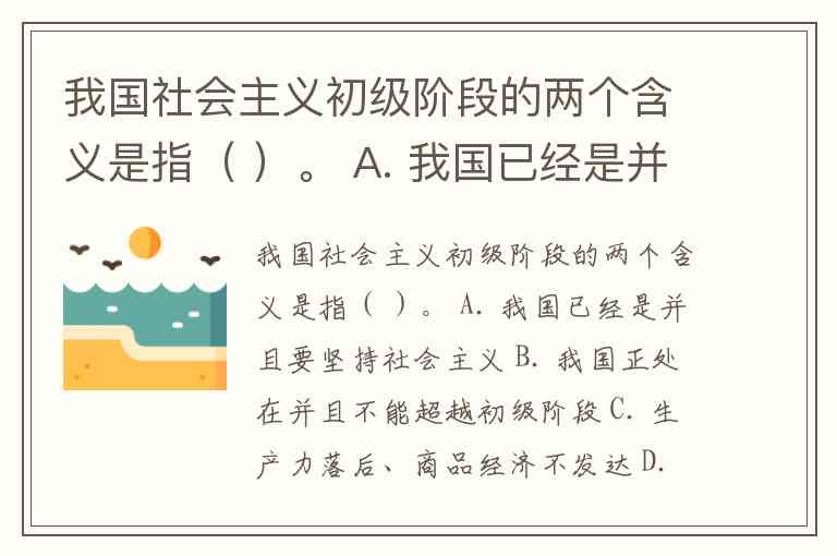 我国社会主义初级阶段的两个含义是指( )。 A. 我国已经是并且要坚持社会主义 B. 我国正处在并且不能超越初级阶段 C. 生产力落后、商品经济不发达 D. 实现别的国家在资本主义条件下实现的工业化和现代化