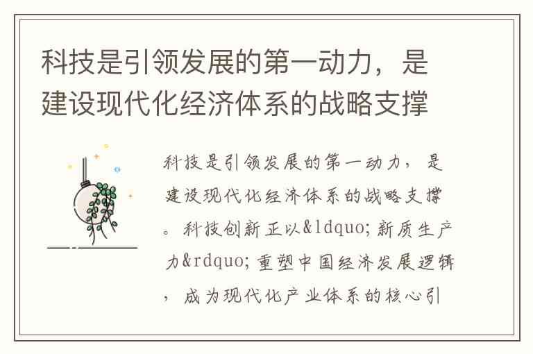 科技是引领发展的第一动力,是建设现代化经济体系的战略支撑。