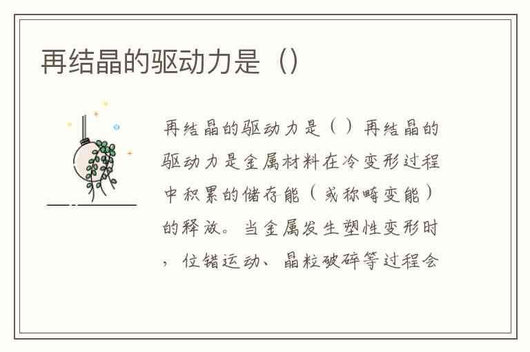 再结晶的驱动力是金属材料在冷变形过程中积累的储存能(或称畸变能)的释放。当金属发生塑性变形时,位错运动、晶粒破碎等过程会将机械能转化为内能储存于材料内部,形成高能不稳定状态。这种储存能主要以晶格畸变、位错密度增加和亚晶界能量等形式存在,成为推动再结晶的核心动力。