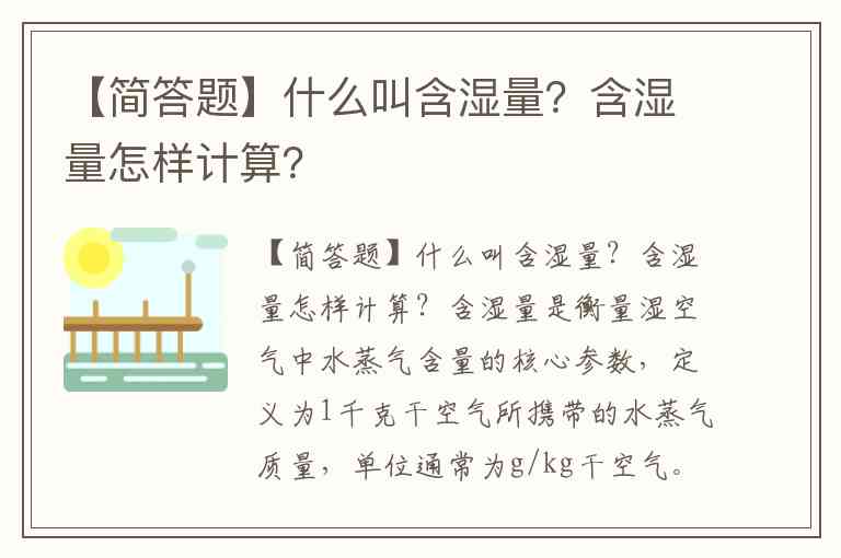 【简答题】什么叫含湿量?含湿量怎样计算?