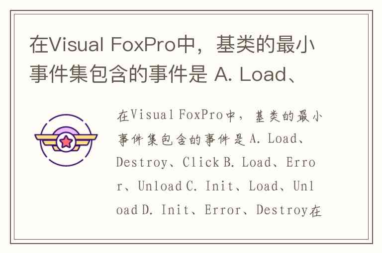 在Visual FoxPro中,基类的最小事件集包含的事件是 A. Load、Destroy、Click B. Load、Error、Unload C. Init、Load、Unload D. Init、Error、Destroy
